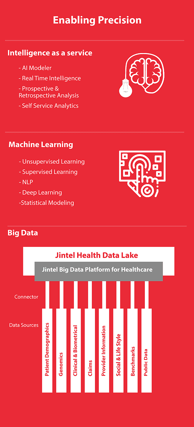 Jintel Health has created a large and comprehensive data ecosystem and intelligence refinery to capture data, turn data into intelligence and deliver “intelligence as a service” for enabling precision medicine with focus on cancers first.